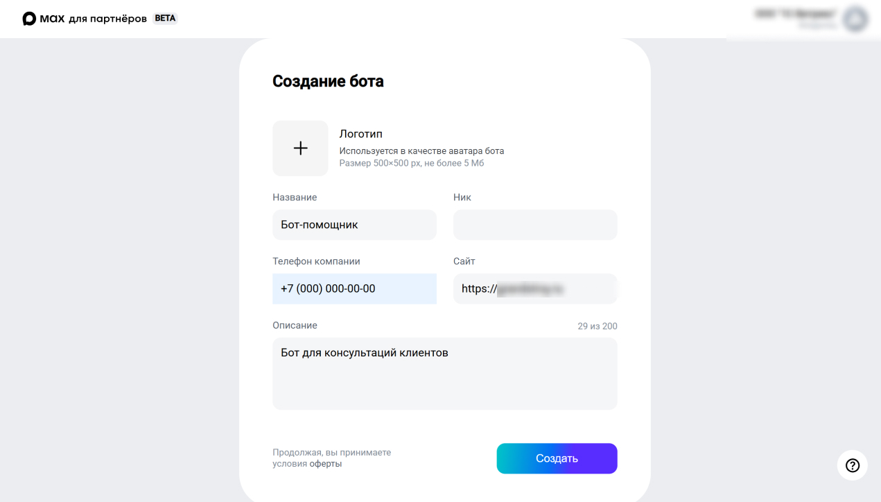 Для подключения MAX потребуется корпоративный чат-бот. Чтобы его создать: