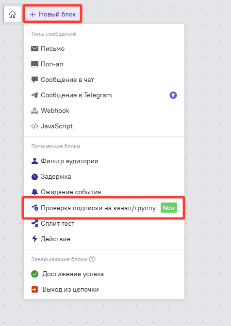 При работе со сценариями в Telegram иногда требуется проверить, подписан ли пользователь на вашу группу или канал в Telegram. Для такой проверки в цепочках и чат-ботах можно использовать блок "Проверка подписки на канал/группу".